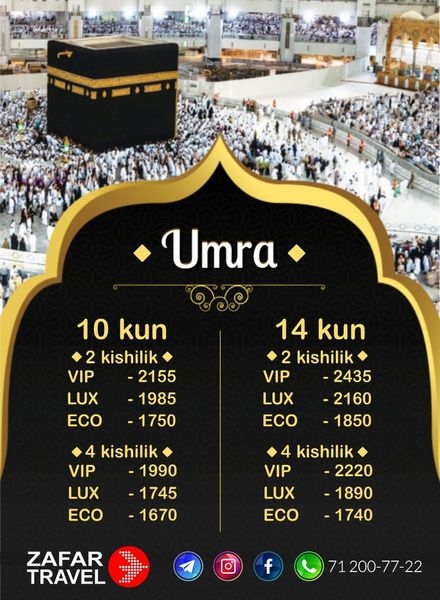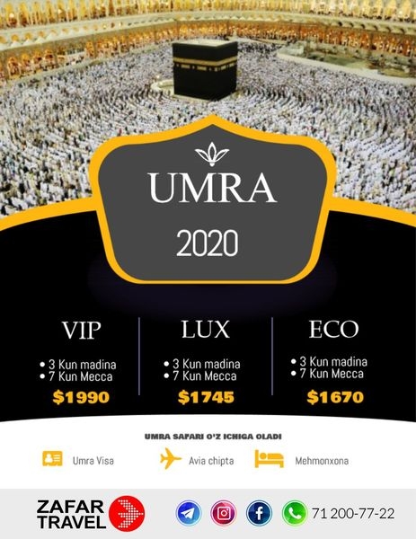 Поделитесь объявлением УМРА Мекка Медина с друзьями, знакомыми, потенциальными клиентами, используйте для этого социальные сети, мессенджеры. Это придаст объявлению популярности и эффект многократно повысится.