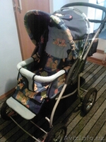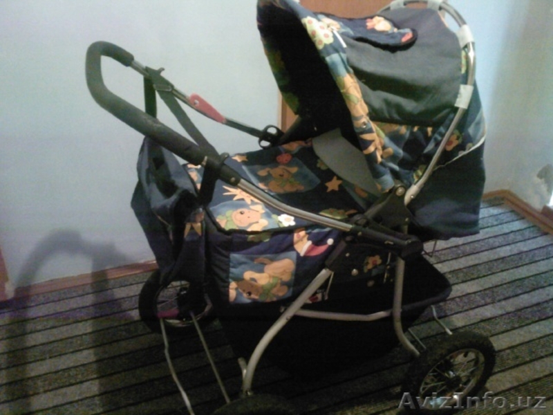 Продаю коляску б/у в нормальном состоянии. Три положения, ручка перекидная, колеса большие, камерные, дождевик, сумка, вместительный багажник. Сиденье можно использовать в качестве люльки и автокресла