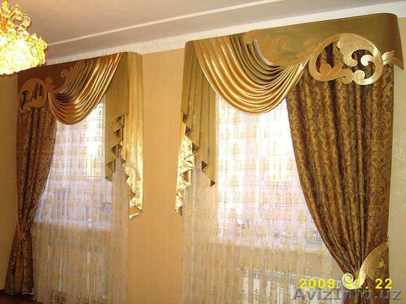 - Портьеры любых видов и различной сложности, такие как австрийские, английские, итальянские, китайские, римские, французские, классические (элитные), японские шторы;
