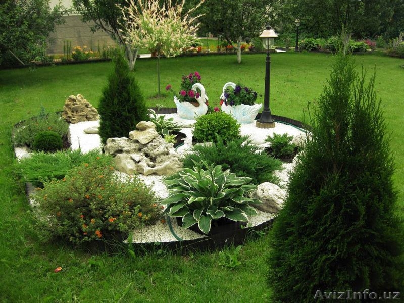 Очень часто озеленение и благоустройство территории вокруг дома осуществляют застройщики, которые возводили дом, это может быть и хорошие строители, но они не специалисты в вопросах озеленения участка. Они не выполняют проекты озеленения садов, удовлетворяющие вкусу хозяина, его взгляду на ландшафтное озеленение. Ведь озеленение территории – это знания зимостойкости, биологические и декоративные особенности растений. Наличие собственного питомника, дает возможность нашей фирме осуществлять посадочные работы в течение всего вегетационного периода. Большой выбор хвойников, декоративно лиственных, плодовых саженцев позволяет создавать неповторимые сады. Фруктовый сад, сад цветов или сад камней, подбор растений для рокария или альпинария смогут сделать только специалисты.