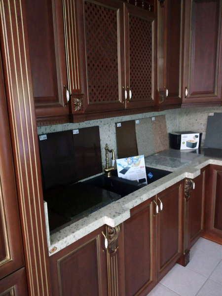 1. Кабинеты (кухонные блоки) изготовлены из ЛМДФ, фирмы Kronopol, цвет Орех