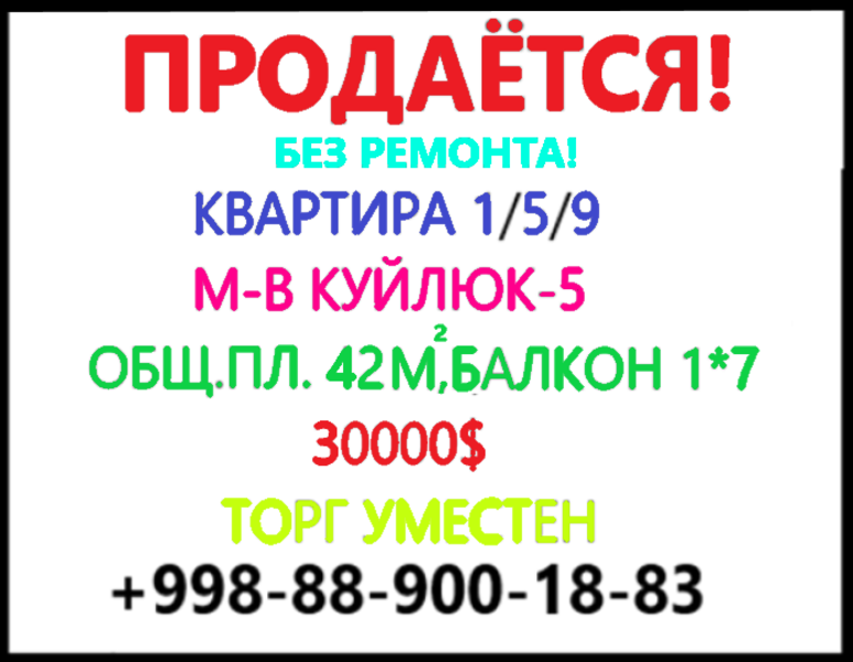 Продается своя квартира! Массив Куйлюк 5! 30000 $(торг уместен)!