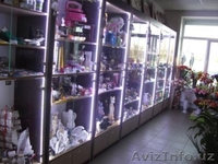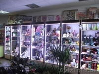 Оборудование - стеллажи с подсветкой, большой холодильник для цветов, кассовый аппарат, товар (цветы, химия, картины, сувениры, саженцы). Цена договорная
