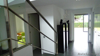 На первом этаже расположены просторная гостиная 45 кв.м. со столовой и выходом в сад 300 кв.м. с видом на море, кухня офис с выходом на террасу, полностью оборудованная и экипированная электробытовыми приборами, две спальни, ванная комната с душем и просторный гараж.