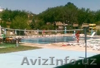 В комплексе есть большой сад, волейбольная и детская площадки, детский бассейн и бассейн олимпийских размеров (25м/12, 50м/1, 80м), наполненные минеральной водой.