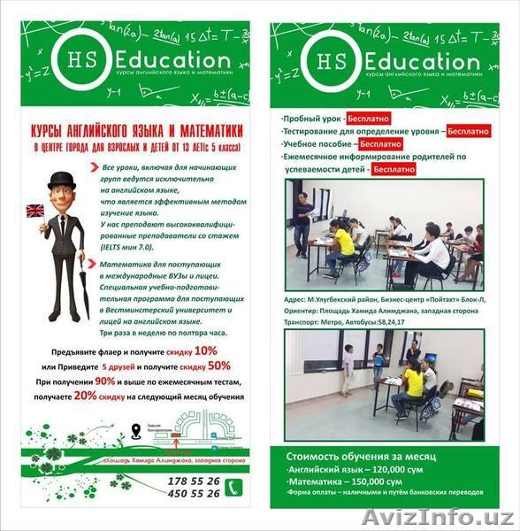 Учебный центр "HS Education" предлагает вашему вниманию курсы английского языка, и математики. Все уроки ведутся исключительно на английском языке высококвалифицированными преподавателями с большим стажем (IELTS мин-7.0). Подготовительные курсы для поступающих в международные ВУЗы и лицеи. Специальная подготовительная программа для поступающих в Вестминстерский университет и лицей (полностью на английском языке)
