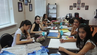 Занятия проходят в светлых просторных помещениях. В классе индивидуальные столы для занятий и рисования. В группе до 12 человек.