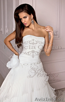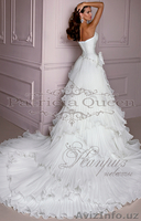Если отталкиваться от факта, что длина шлейфа в Средние века и в эпоху Ренессанса определялась статусом женщины, то свадебное платье Katarina достойно истиной Королевы! И не только за счет длины (она сравнительно небольшая), сколько за счет великолепия юбки и шлейфа! Это сногсшибательное платье похоже на многослойный воздушный десерт, поражающий количеством и роскошью деталей! Не сомневайтесь: ваш избранник лишиться дара речи, увидев Вас в таком наряде!