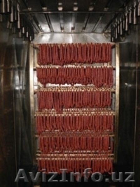• тележки (по количеству секций термокамеры) в комплекте со шпажками для навешивания колбасных батонов;