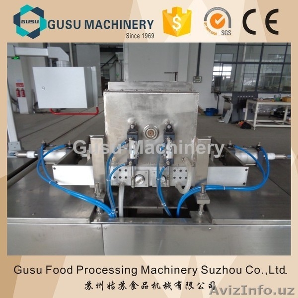 Поршни депозиторов сервоуправления или пневматического привода повышают точность размера. Оптимальный размер бака и система циркуляции воды с двойной рубашкой эффективного управляют депозитной температурой. Легко для того чтобы убрать и очистить шоколадную мешалку и бак. Из нержавеющей стали, используемой для рабочих частей и всех компонентов, которые вступают в контакт с продуктом. Удобный экран со специально разработанными управлением PLC всех рабочих параметров.
