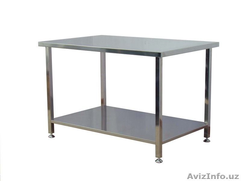 Столы разделочные из нержавеющей стали, могут быть с верхними и нижними полкам, открытыми и с тумбами для хранения пищевых продуктов