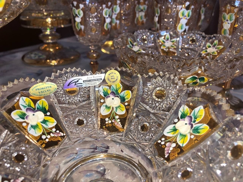 Qo'lda ishlangan oltin bezakli Chexiya Bohemiya to'plamini sotamiz. Hammasi o'zining asl qutilarida, jumladan: 13 ta bohemiya + 1 vaza + Fujerlari.
