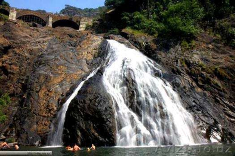 В переводе с маратхи «Дудхсагар»означает «молочный океан». Таким поэтическим названием водопад обязан молочно-белому цвету воды. Это второй по величине и, бесспорно, первый по красоте водопад в Индии. Дудхсагар (Dudhsagar Falls), находится на крупнейшей гоанской реке Мандови, в предгорье Западных Гат, на границе штатов Гоа и Карнатака (Carnataka). Своей высотой в 310 м и длиной потока свыше 600 м Дудхсагар входит в топ 5 индийских водопадов и занимает 227 место в мире. Многоуровневый и полноводный даже в сухой сезон, водопад считается одним из самых впечатляющих природных явлений и стожером экосистемы Южного Гоа. Дорога к водопаду пролегает через природный заповедник Бхагван Маховир. Организованные группы туристов доставляют до водопада на джипах. Проводятся экскурсии с гидом. В заповеднике водятся дикие животные (пантеры, тигры, мангусты, змеи), а также ручные обезьянки (корм для них, то есть связки зеленых бананов, многочисленные торговцы продают перед входом в заповедник). Внизу образуется озеро с очень холодной водой, в которой плывут большие рыбы. Но некоторые туристы все таки рискуют искупаться в нем. Посетите Индию и насладитесь всеми красотами тропической природы Гоа!