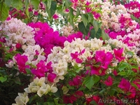 Булдонеж, Гортензии, Цезальпиния, Индийская сирень, Багряник, Брючина, Сирийская роза, Бугенвиллия, Ель, Мжжавельник, Сосны, Олеандра и Пииари слива, Юкка,