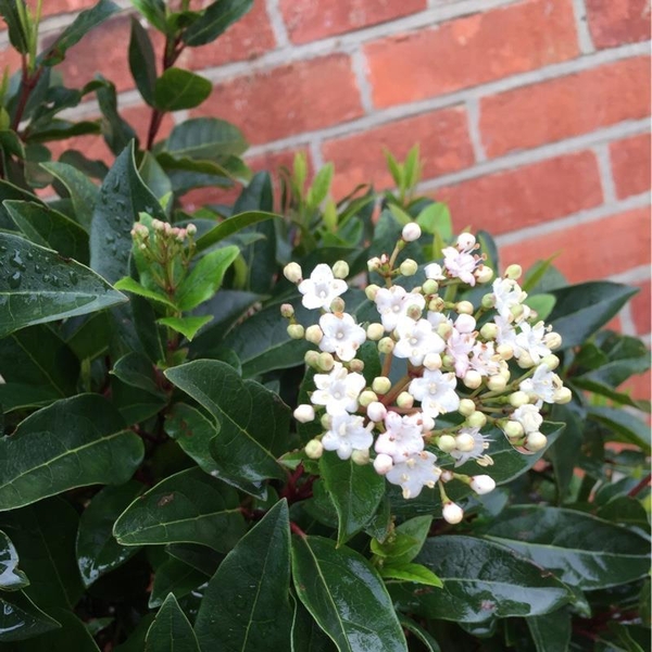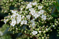Калина лавролистная – вид из рода Калина (Viburnum) семейства Адоксовые (Adoxaceae). Родом из Средиземноморья. Распространена практически по всей Европе, на Юго-Западе Азии, Северной Африке. Живет больше 40 лет. Представляет собой сильноветвящийся вечнозеленый кустарник или дерево до 3-4 м в высоту и до 3 м в ширину. Крона плотная, округлая. Молодые ветки зеленовато-желтого цвета, позже – светло-коричневые, жесткоопушенные, почки тоже опушенные. Кора трещиноватая, темно-коричневого цвета. Вначале растет медленно, позже – быстрее.