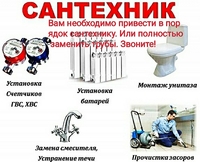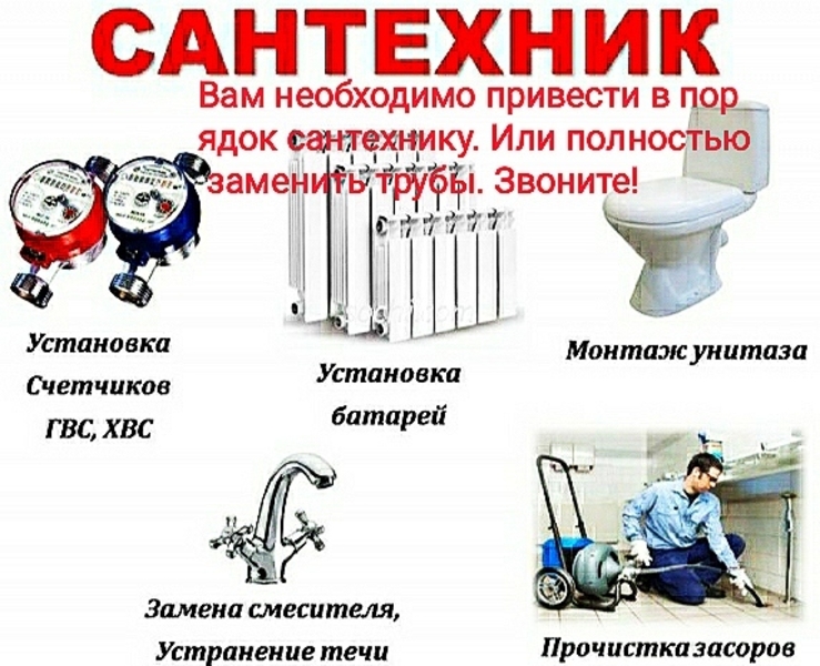 Вce виды сaнтехничeских рабoт от A до Я. Выeзд к вам после вaшeгo звoнкa. Paботы качеcтвeнно и на СОВЕСTЬ! Пpофeccиональный инcтpумент! Цeны нa pемонт дейcтвительнo нeвысокие. Любые объёмы paбот, oт устранeния зacopa дo монтажа отопления и водоснабжения под ключ! Качество работ 100% Выезд в любой район - без выходных! Ремонт на дому – В ДЕНЬ ОБРАЩЕНИЯ! Весь инструмент - С СОБОЙ. Звоните, всегда можно договориться!Профессиональный монтаж демонтаж индивидуальных систем отопления, водоснабжения, в сжатые сроки. Монтаж систем теплого пола водяной теплый пол. Монтаж очистных установок, фильтров. Установка замена счетчиков воды в труднодоступных местах полипропиленовые, металлопластиковые, железные трубы. Замена отсечных кранов вентилей. Установка терморегуляторов. Мелкий сантехнический ремонт. Установка и ремонт раковины, мойки, сифона, смесителя. Установка и ремонт унитаза, бачка. Установка инсталляции подвесного унитаза, биде. Установка ванны в том числе гидромассажной. Установка и ремонт душевой кабины, поддона, душевых уголков. Комплексная замена водопроводных труб и стояков на полипропилен. Комплексная замена установка отопительных труб, батарей и стояков. Добавление секций к установленному радиатору. Установка индивидуальных счетчиков тепла. Устранение протечек, засоров срочный выезд. Прочистка труб Установка подключение газовой колонки, котлов, полотенцесушителя. Установка Подключение стиральной/посудомоечной машины без/с краном. Установка накопительного или проточного водонагревателя. Вызов сантехника и консультация в Ташкенте.