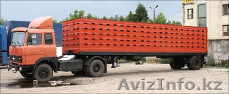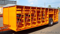 Автомобильный полуприцеп скотовоз( ооо союзавтотранс+375291024584, +375176751993 sat.com@mail.ru) одноярусный, предназначены для перевозки мелкого и крупного рогатого скота (перевозки свиней и КРС). Платформа полуприцепа скотовоза САТ — стальная, пол рифленый стальной чечевица, подвеска рессорная. Кузов полуприцепа скотовоза САТ изготовлен из стального каркаса и обшит окрашенным оцинкованным листом 0.55 мм. Для удобства и безопасности кузов двухосного полуприцепа скотовоза САТ разбит на три отсека, оборудован боковыми вентиляционными окнами по всей длине и двумя на переднем борту. Вентиляционные окна двухосного полуприцепа скотовоза САТ имеют три положения: закрыто, полуоткрыто и открыто. Для удобства выгона-загона скота с пандуса, полуприцеп скотовоз САТ оборудован двумя небольшими откидными трапами, расположенными в средней и задней его части. В передней части полуприцепа скотовоза САТ сбоку имеется люк для кормления животных. Полуприцеп скотовоз САТ может эксплуатироваться с тягачами МАЗ, КАМАЗ и другими аналогичными тягачами.