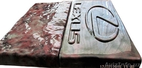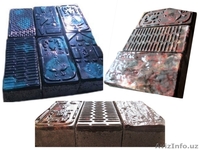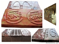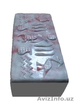 Предлагаем производство брусчатки с глянцевой поверхностью (под мрамор) любой расцветкой и колеровкой (см. фото). Фактурная часть плитки также может быть любой (можем сделать под заказ с Вашим рисунком). Брусчатка делается в два этапа...вибролитье, а потом прессованием.