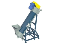 Ювилган пластик, резина, пластик бўлаклари центрифуга жойлаштирилади, бу ерда марказдан қочирувчи куч таъсири остида намлик хом ашёлардан ажралиб чиқади. Ҳосил бўлган намлик бункер деворларидан центрифуга тубига оқиб тушади ва центрифугадан сувни тўкиш трубкаси орқали чиқарилади.