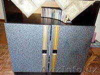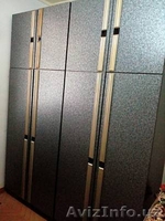 Стенка в отличном состоянии, 6 секц., со съемными антресолями.Высокий шкаф с полками, плательный шкаф, тумба для телевизора, шкаф-бар, шкаф с зеркалом и стеклянными полками, шкаф с открытыми полками, это все входит в стенку.Длина : 4, 5 метра, цвет мрамор.Стенку можно соединить, можно по отдельности поставить как на фото, что конечно тоже является плюсом.