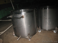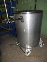 Предлагаем изготовить дежи объемом от 0, 5л. до 2000 литров на 4-х колесах – два из которых вращаются, или под роклы, погрузчик и т. д , со сливным патрубком в нижней части и отбойником в верхней части для предотвращения разлива материала при транспортировке или с бандажом усилителем верхней части дежи, с крышкой различной конструкции или без нее, с закругленными углами днища для облегчения ее очистки и рукояткой для управления. Выполняется из конструкционной или нержавеющей стали как технической, так и пищевой. Специальные дежи под выдавливание прессом, с шнековой нижней разгрузкой, под вакуум, с рубашками охлаждения/нагрева, с автоматикой контроля и другим нужным для технологии производства продукта оснащением, по техническому заданию заказчика.