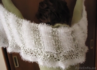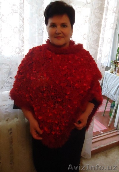 Вяжу (ручное вязание) женские шляпки с полями, типа "ушанки", береты из пряжи "травка", детские шапочки , модные в этом сезоне повязки с "косой", пелерины, шарфы(палантины), болеро или жилетики. Стоимость работы в зависимости от расхода пряжи.Есть готовые шарфы (фото1)-красного, белого, золотистого, черного цветов.Цена в зависимости от размера: 50х140 стоит 40 тыс.сум, 60х160 по цене 60 тыс.сум. Готовые шляпки из "травки " (фото 10)белые и черные . Готовые безрукавки из "травки"- 2 коричневые, бордовая, терракотовая, белая, черная.