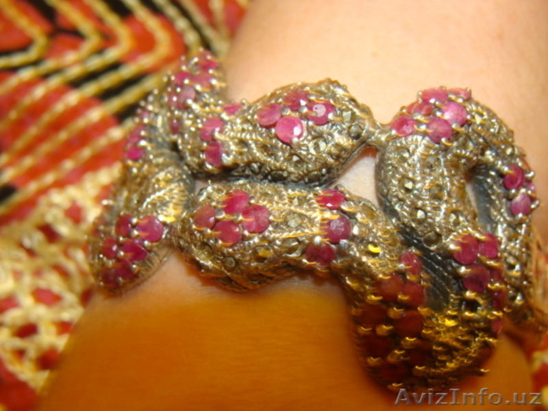 Хотите приобрести талисман года ! Продается шикарный серебреный комплект со змейками украшенный настоящими индийскими рубинами , ручной работы . Браслет и кольцо . 600 000 сум